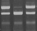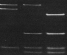 First lane: example of a patient positive (homozygous) for the R158C mutation (=apo E2/E2) in the apo E gene. Second lane: a patient positive having nor a mutation at amino acid position 112 nor at 158 (=apo E3/E3). Third lane: a patient positive (homozygous) for the C112R mutation (=apo E4/E4) in the apo E gene
